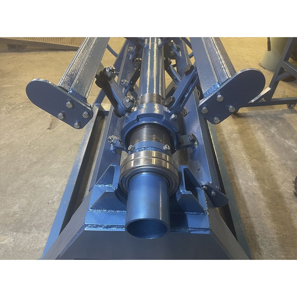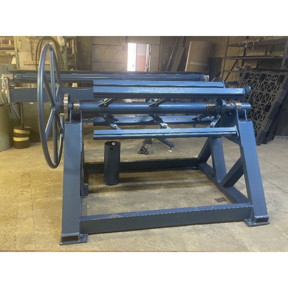 Разматыватель рулона 1250х10 с упрощенным разжимом спроектирован для работы с рулонным металлом до 1250 мм шириной и максимальным весом 10 т. Основным отличием данного размотчика от других моделей является упрощенная система разжима, позволяющая настраивать разжим внутренней части рулона очень простым способом. Станок оснащен специальной разжимной гайкой, вращая которую можно настроить внутренний подпорный механизм под необходимый диаметр рулона, который планируется использовать. Это делает регулировочный процесс простым и быстрым. Настраивать по отдельности каждую поддерживающую направляющую больше не требуется, так что с данной системой регулировки процесс работы на станке становится более эффективным. Поддерживающие направляющие станка облицованы деревянным брусом, который предотвращает царапание металла во время работы.