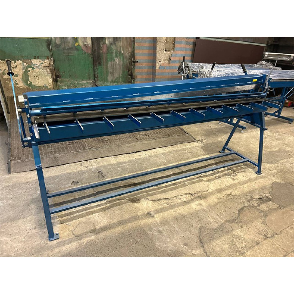 Рабочая длина станка составляет максимум 2550мм. Гильотина оборудована системой предварительного прижима металла, за счет которой металл предварительно прижимается перед резкой чем обеспечивается его фиксация и отсутствие смещений во время реза. Как правило, гильотинные ножницы НГ 2550х1 нашего производства чаще всего используется при выполнении подготовительных работ по нарезке и раскрою листового и рулонного металла на заготовки необходимых размеров. Данные заготовки в последующем могут быть использованы при выполнении гибочных операций на ручных листогибах, вальцевании металла на листогибочных вальцах, прокатки разнообразных профилей и кровельных картин на прокатных станках и т.д. Гильотина НГ 2550х1 оборудована задними упорами, позволяющими устанавливать необходимую длину листа который необходимо резать. Металл на предприятие может поступать в рулонах или листах, если металл поступает в рулонах, то он с помощью разматывателя рулонного металла подается к гильотине и уже с помощью нее производится рез. Если же металл поступает на предприятие уже в листах, то его с помощью гильотины его могут нарезать на более мелкие заготовки для дальнейшей работы.