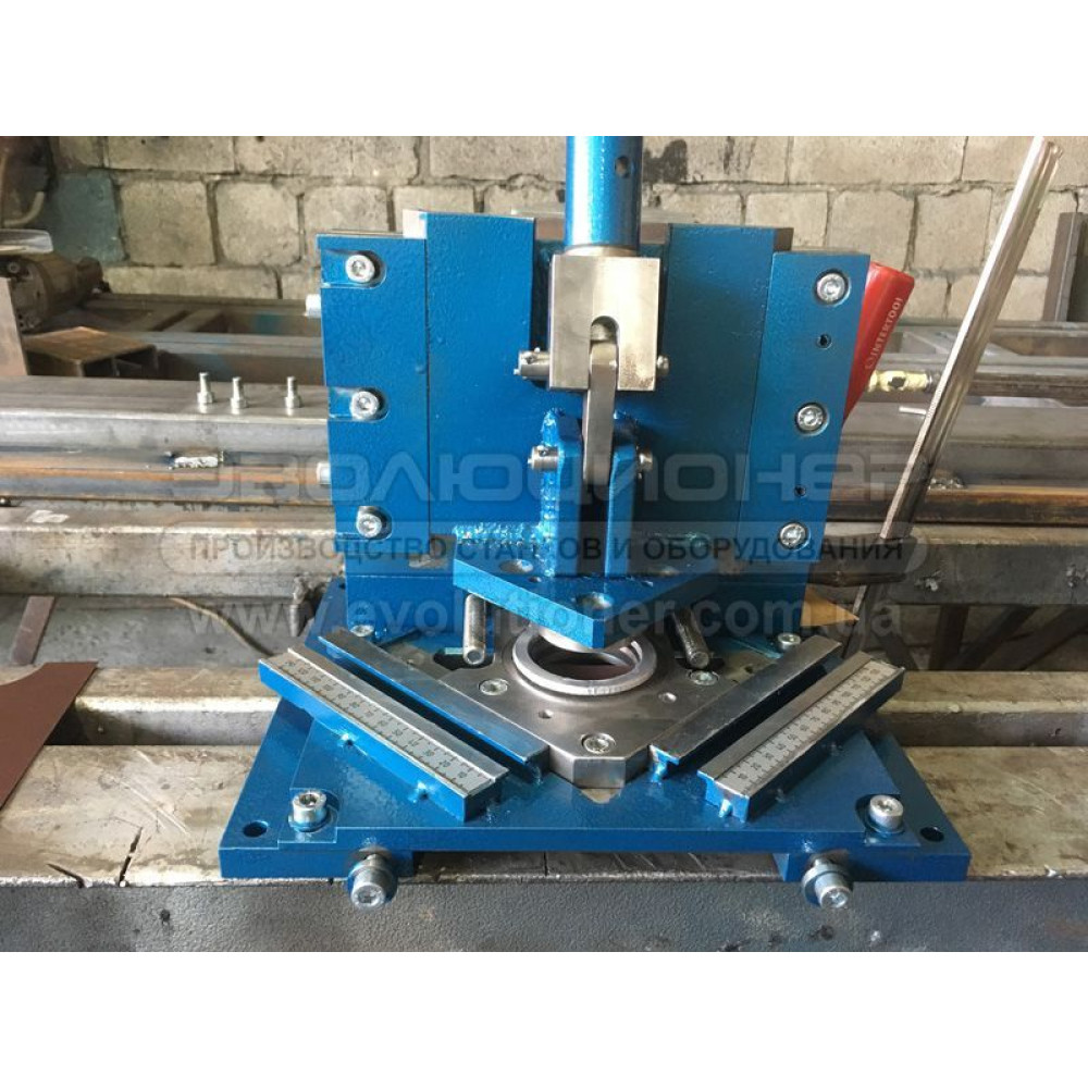 В стандартном варианте изготовления Ручной вырубной пресс предназначен для высекания улов в заготовке, из которой в дальнейшем получается фасадная кассета или короб, то есть изделие с загибами со всех четырех сторон листа.