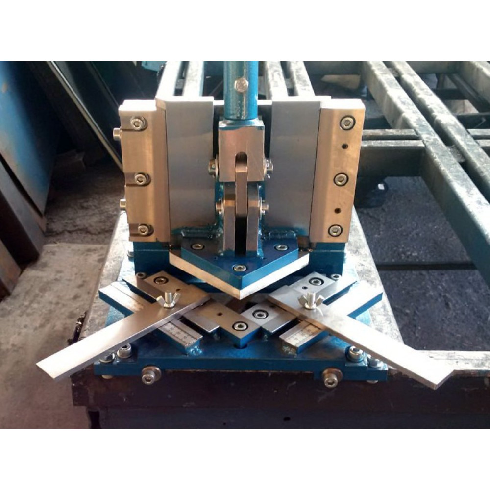 Высечной пресс для углов используется в процессе изготовления кассет и коробов из листового металла. Для того чтобы загнуть изделие с четырех сторон, то есть обогнуть его края вокруг определенной плоскости, предварительно края этого изделия должны быть подготовлены. Для возможности осуществления такого загиба, на углах листа предварительно вырезают углы, зачастую использую при этом простые ножницы по металлу. Это подходит при единичном изготовлении кассет-коробов. Когда же производитель сталкивается с определенными объемами требуемых работ, то тратить столько времени только на подготовку заготовки уже становится нецелесообразным. Именно для более эффективного выполнения этой операции мы и предлагаем использовать высечной пресс для углов нашего производства.